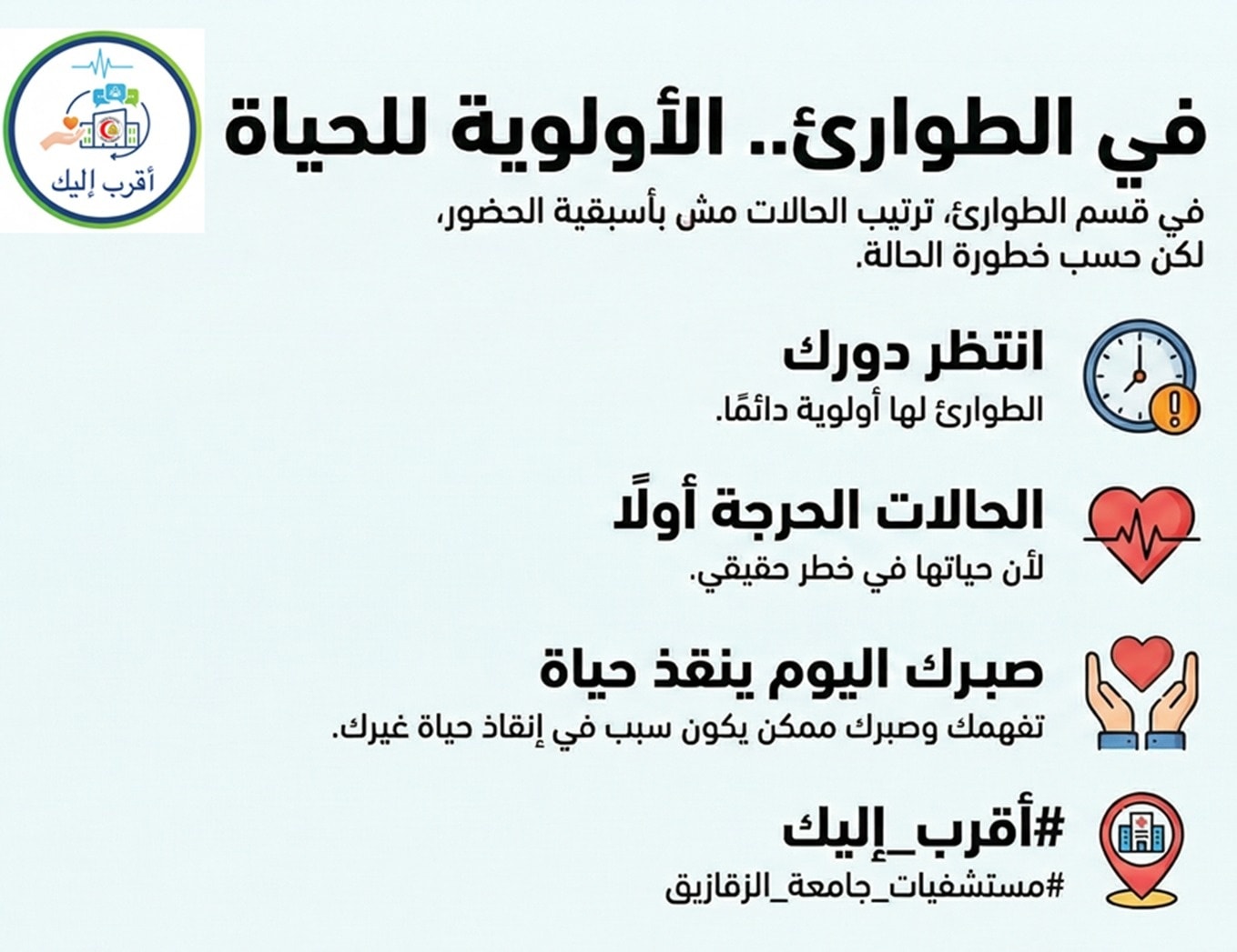 #انتظر_دورك - الطوارئ لها أولوية. - الحالات الحرجة أولا لأن حياتها في خطر. - صبرك اليوم قد ينقذ حياة غيرك غدًا. - نعمل معًا من أجل سلامتكم.