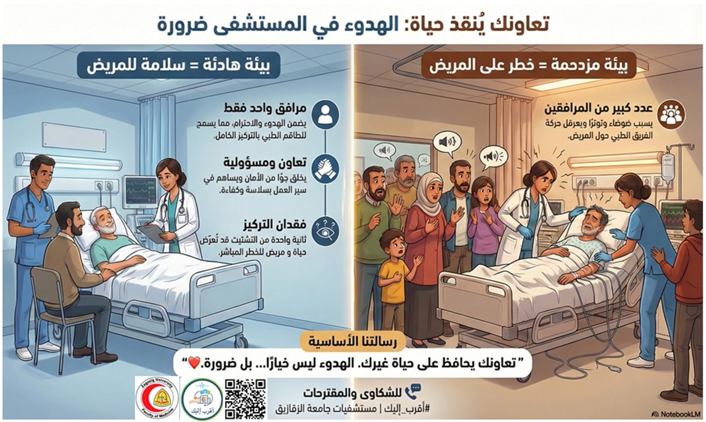 - تعاونك يحافظ على حياة غيرك. - ثانية فقدان تركيز داخل المستشفى قد تكون خطرًا على مريض. - الهدوء ليس خيارًا… بل ضرورة