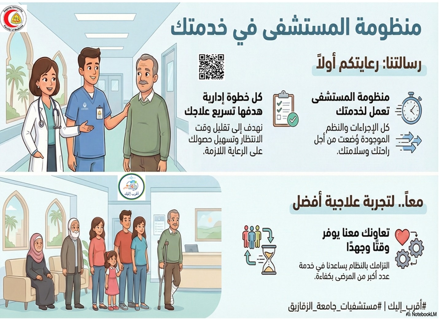 منظومة المستشفى تعمل لخدمتك. كل خطوة إدارية داخل المستشفى هدفها تسريع علاجك. تعاونك معنا يوفر وقتًا وجهدًا.